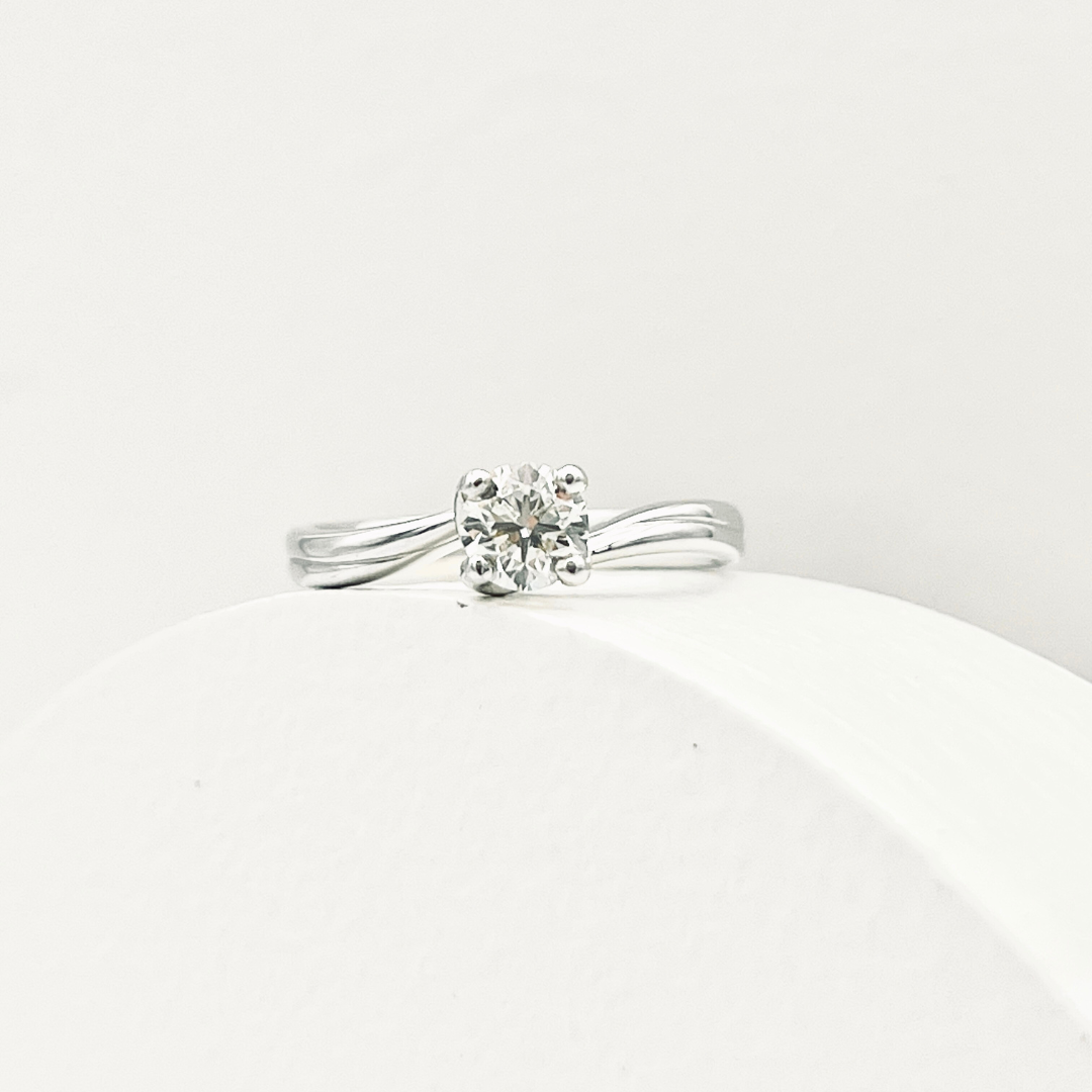 Diamond weighted 0.50 carat, I colour, VVS2 with GIA certificate. Beautifully set in 18K white gold twisted band ring.