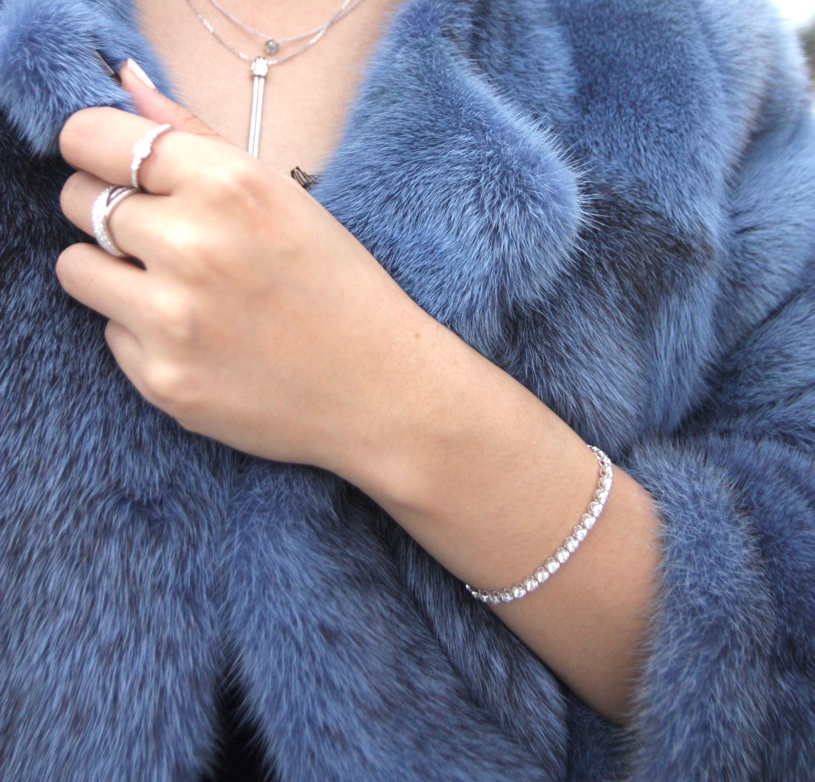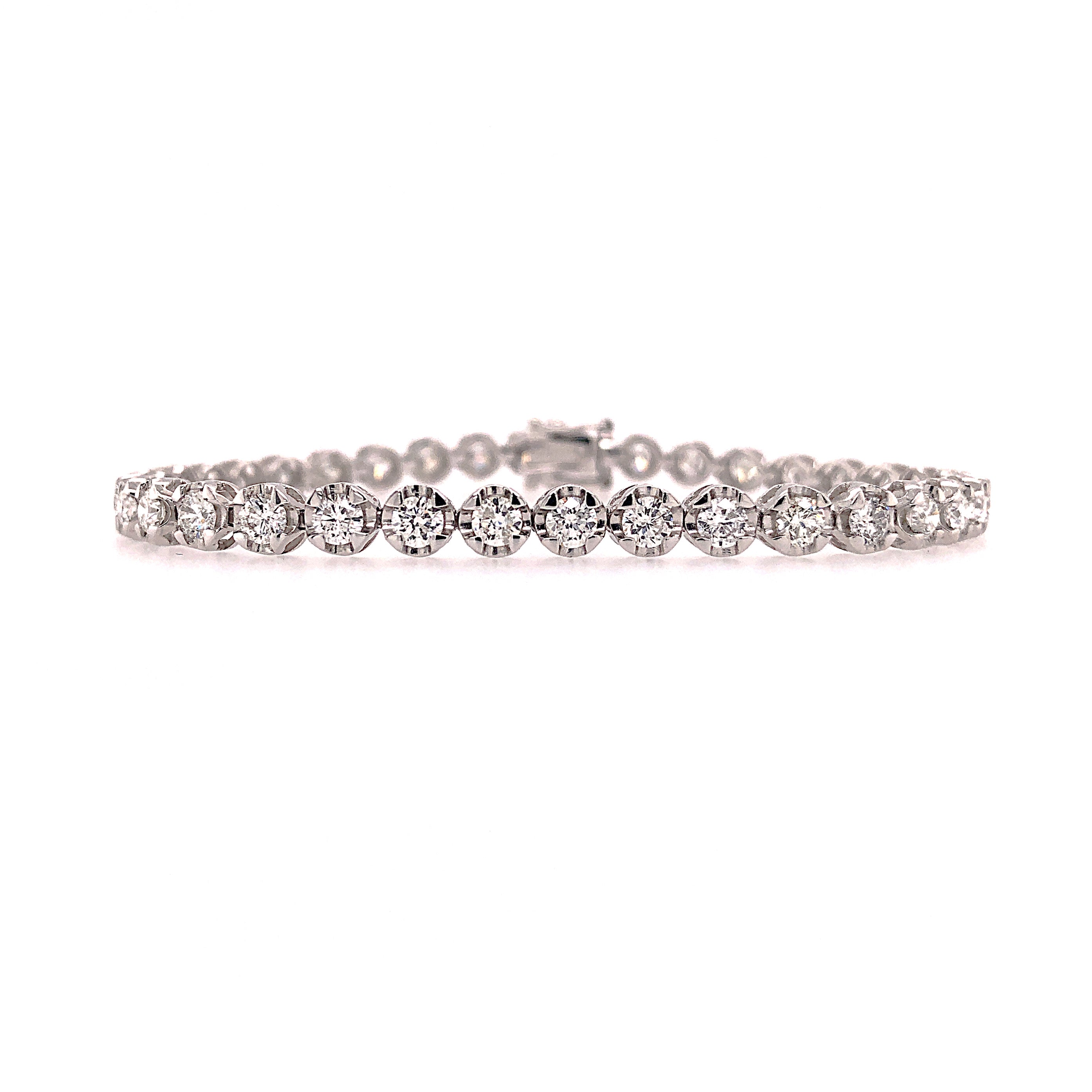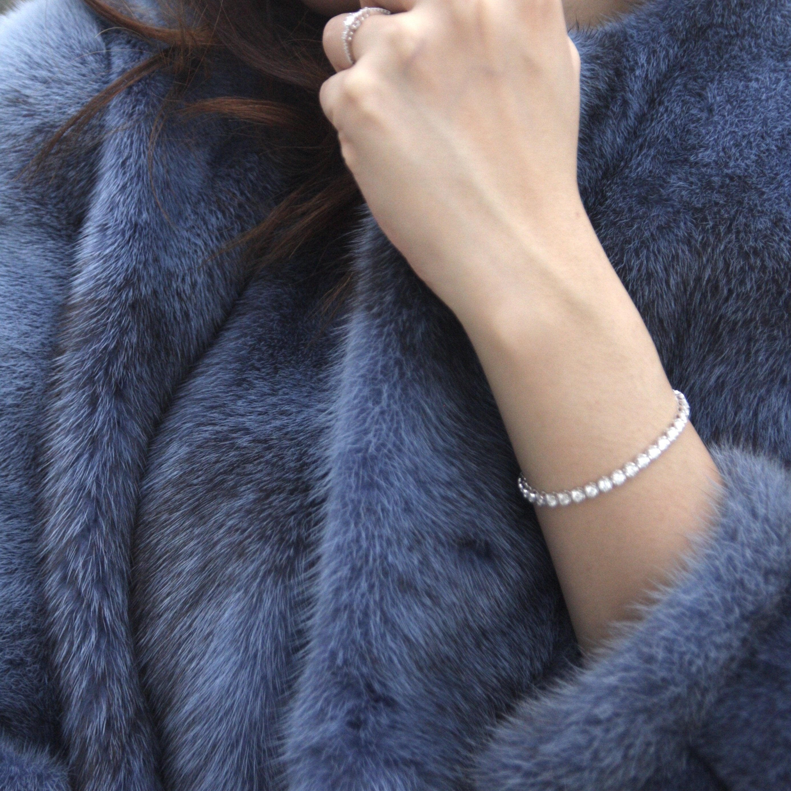 This timeless bracelet design is one of our best sellers. All-natural top-quality diamonds in F to G color, total weight around 3.45 carats, each diamond is around 9 points.