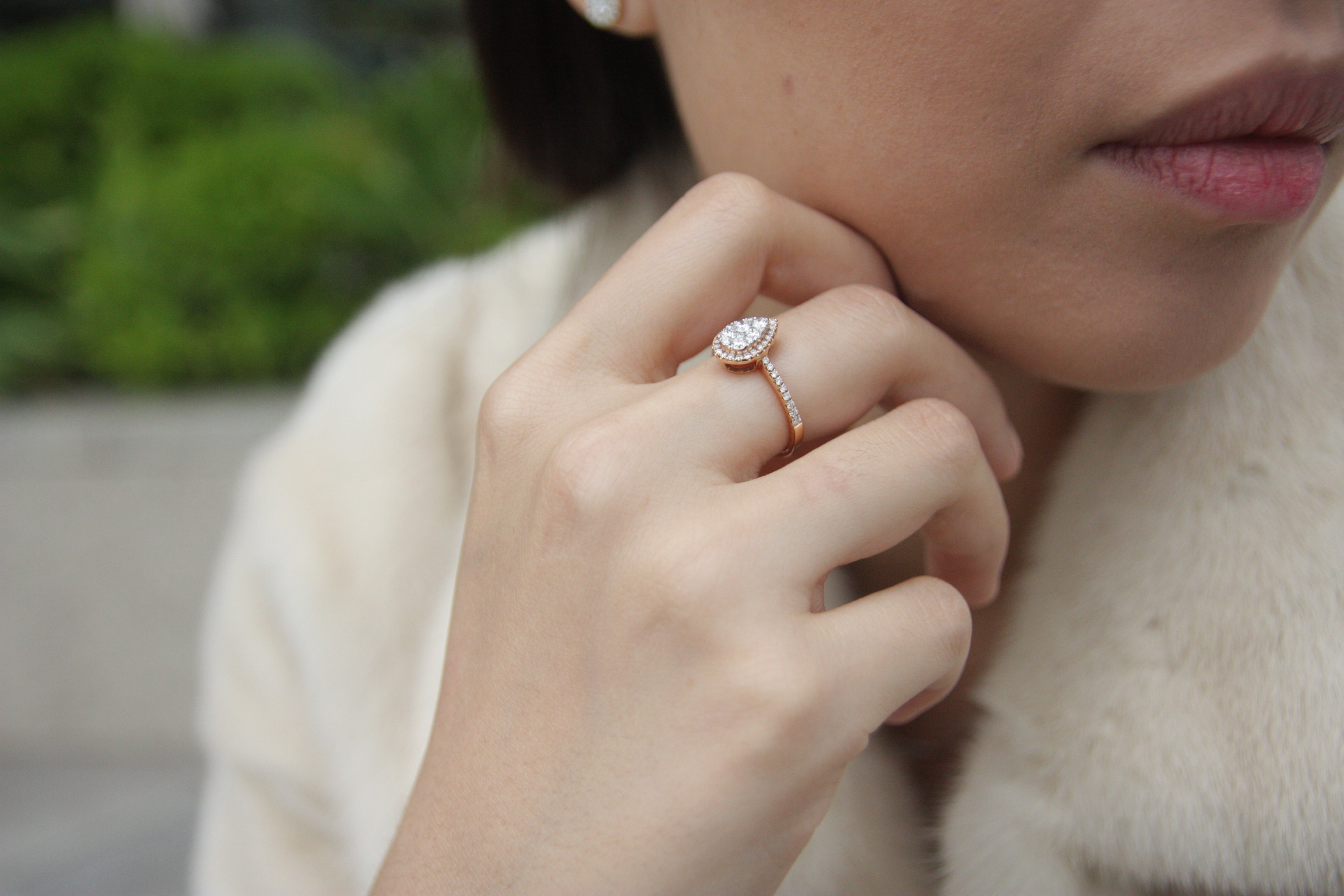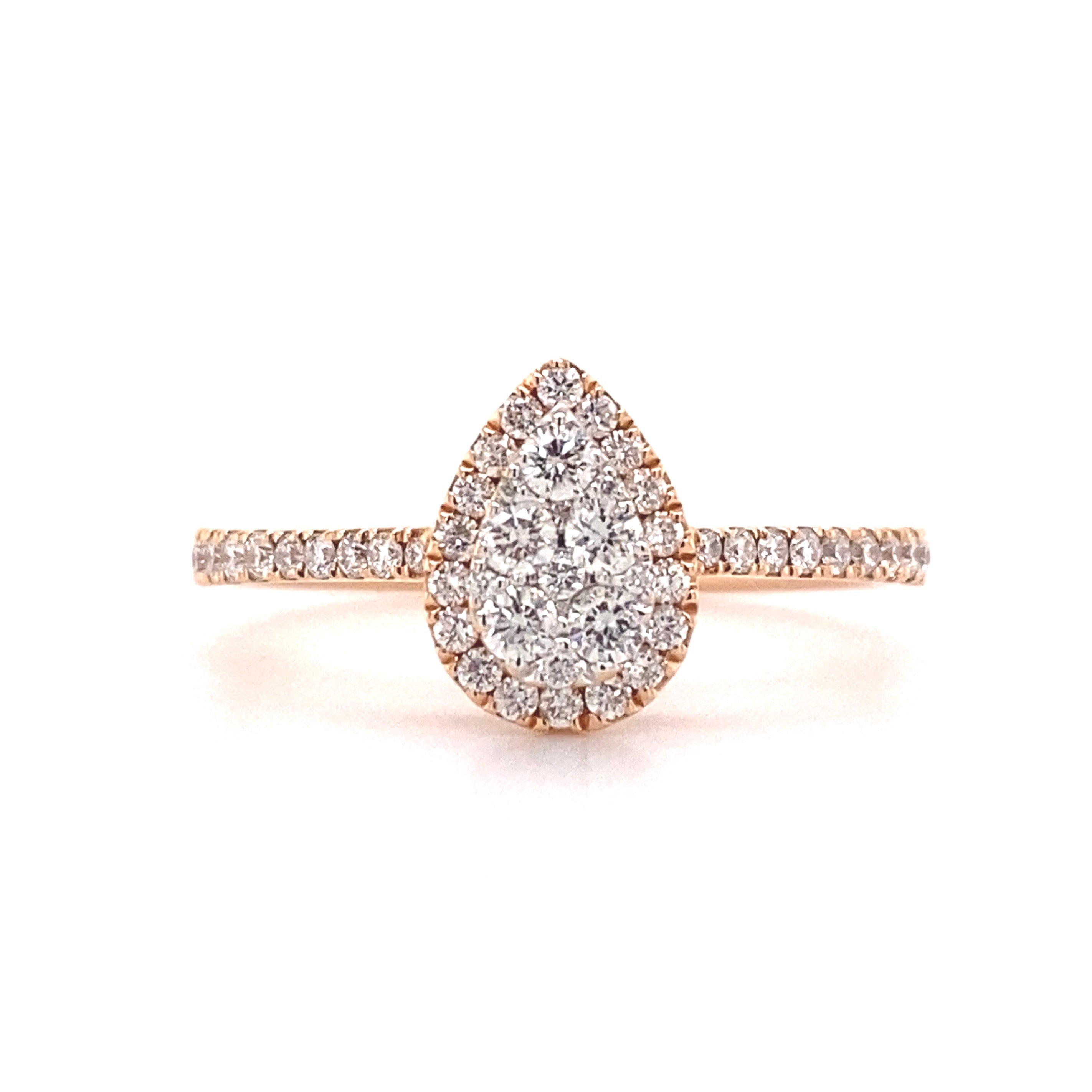 Top quality diamonds total 0.41 carat set in 18K rose gold ring.