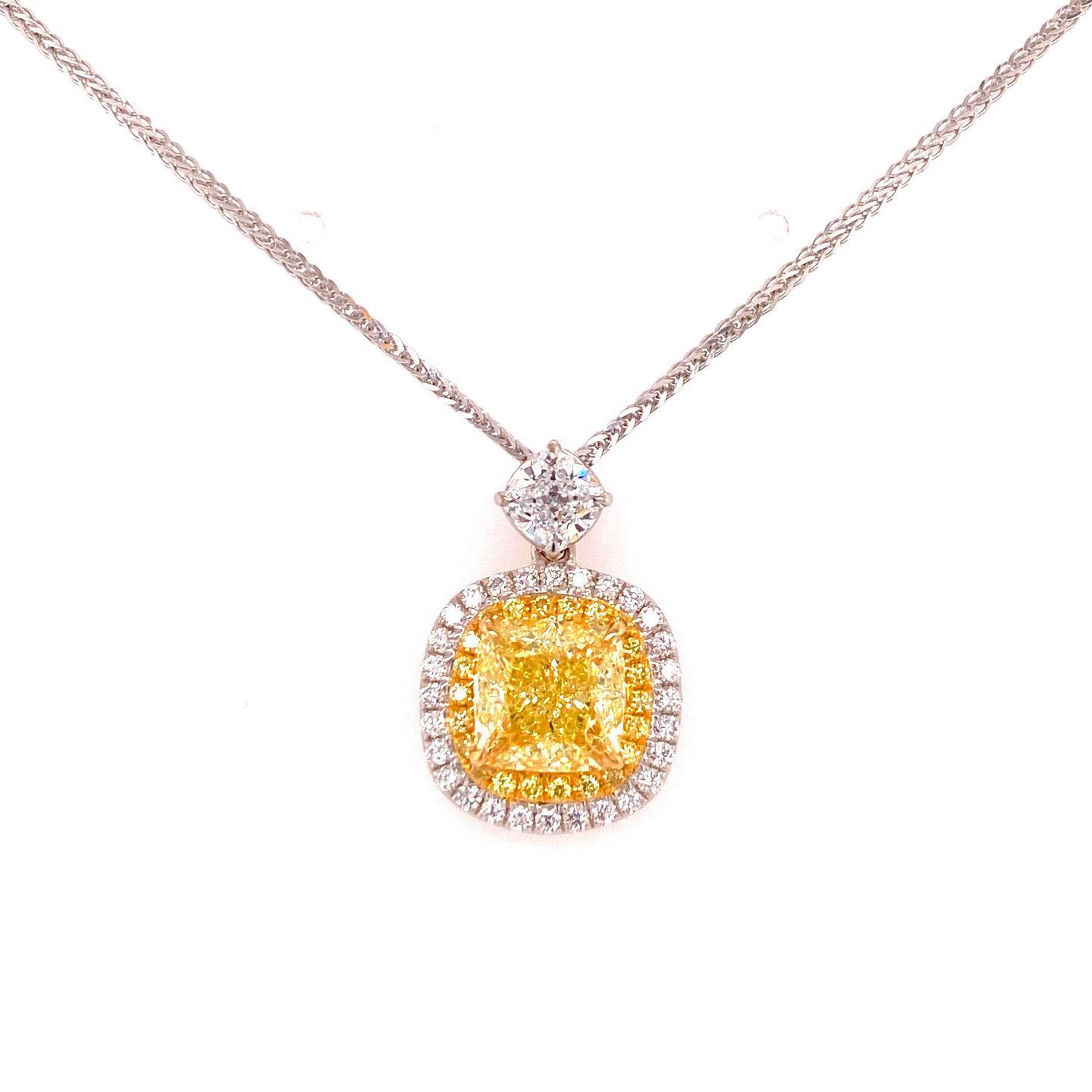 Cushion Fancy Yellow Diamond Necklace