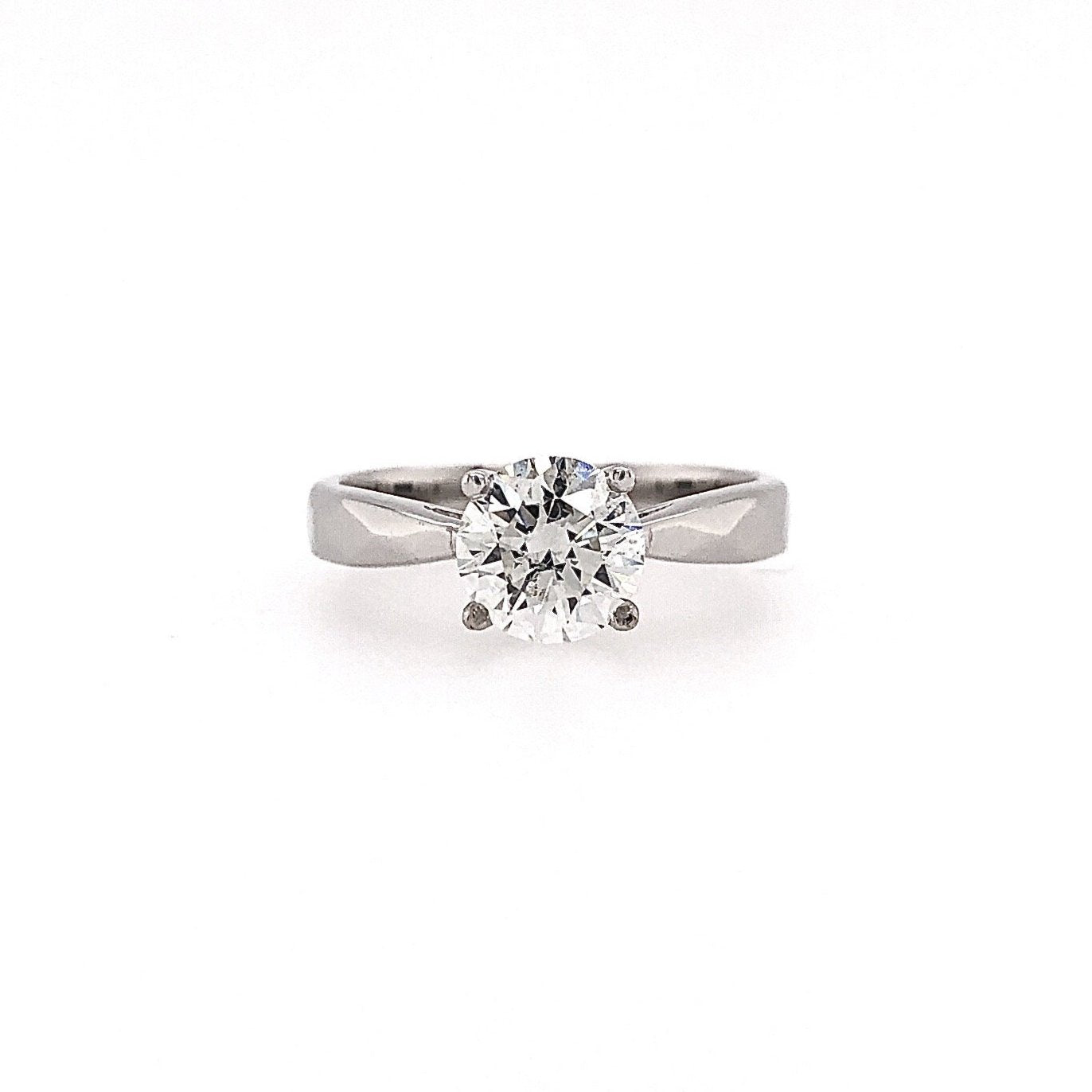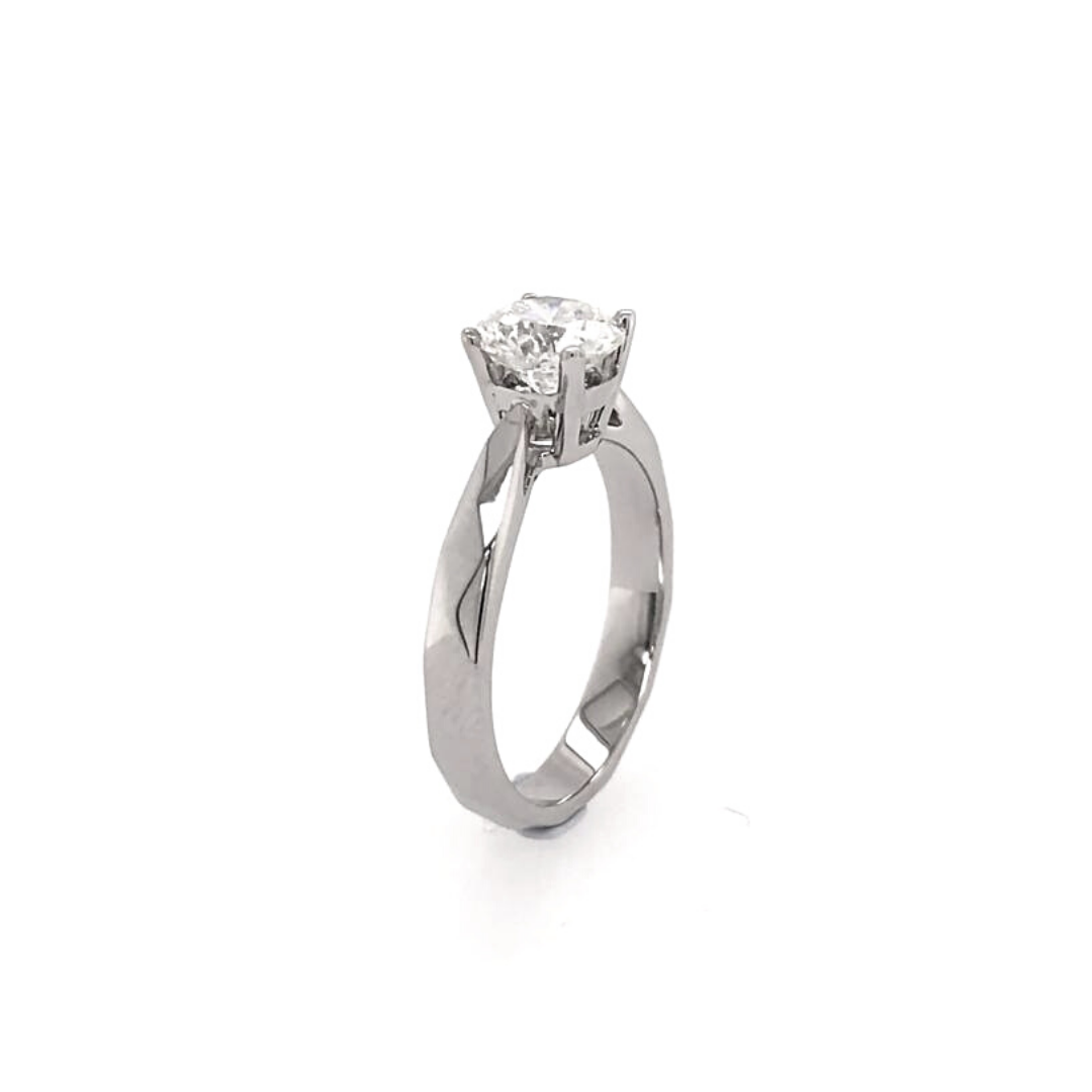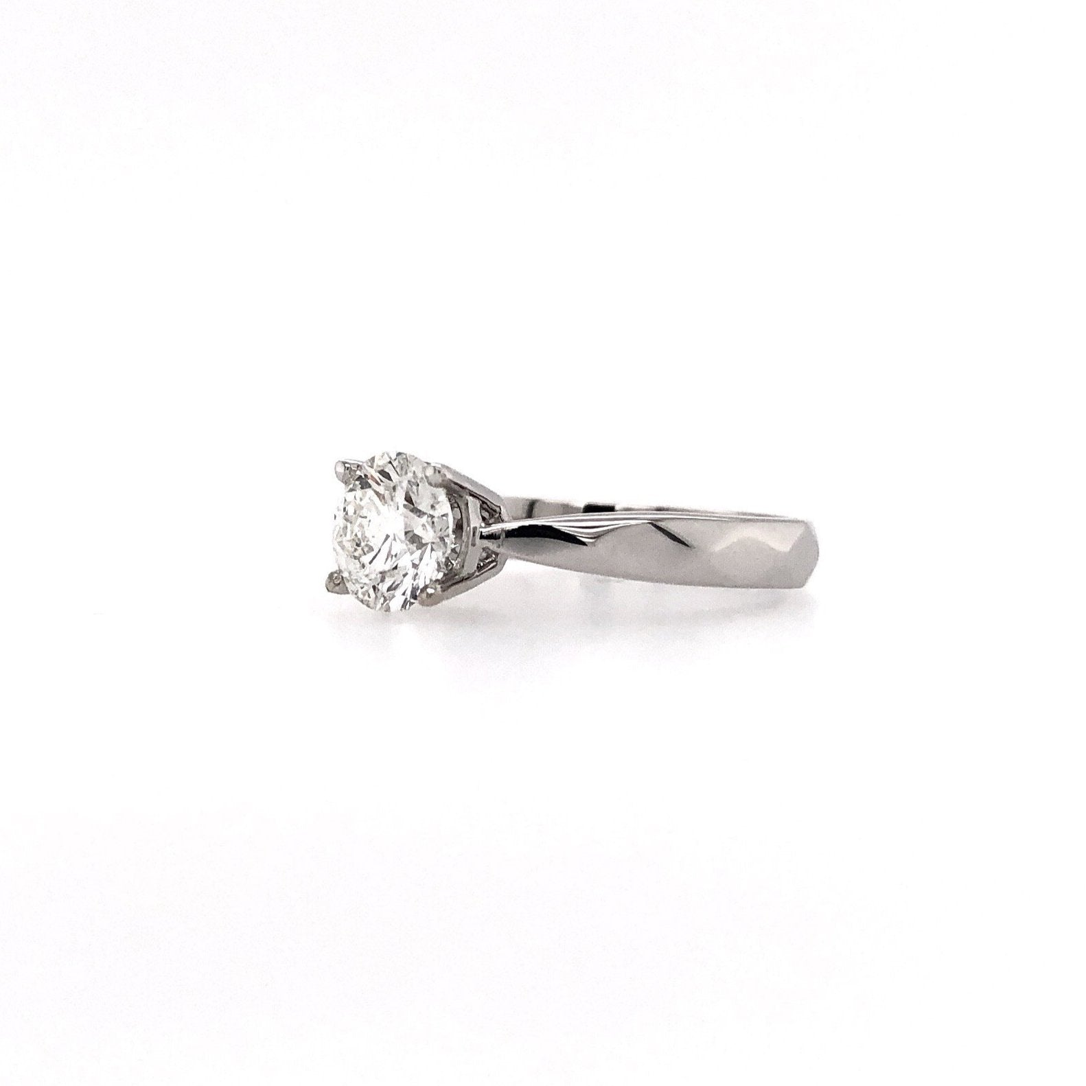Round Brilliant natural diamond set in 18K white gold ring setting. Main diamond is 1.00 carat in H colour VS1 clarity with a GIA certificate, you may request to check the report copy by e-mail before purchase.