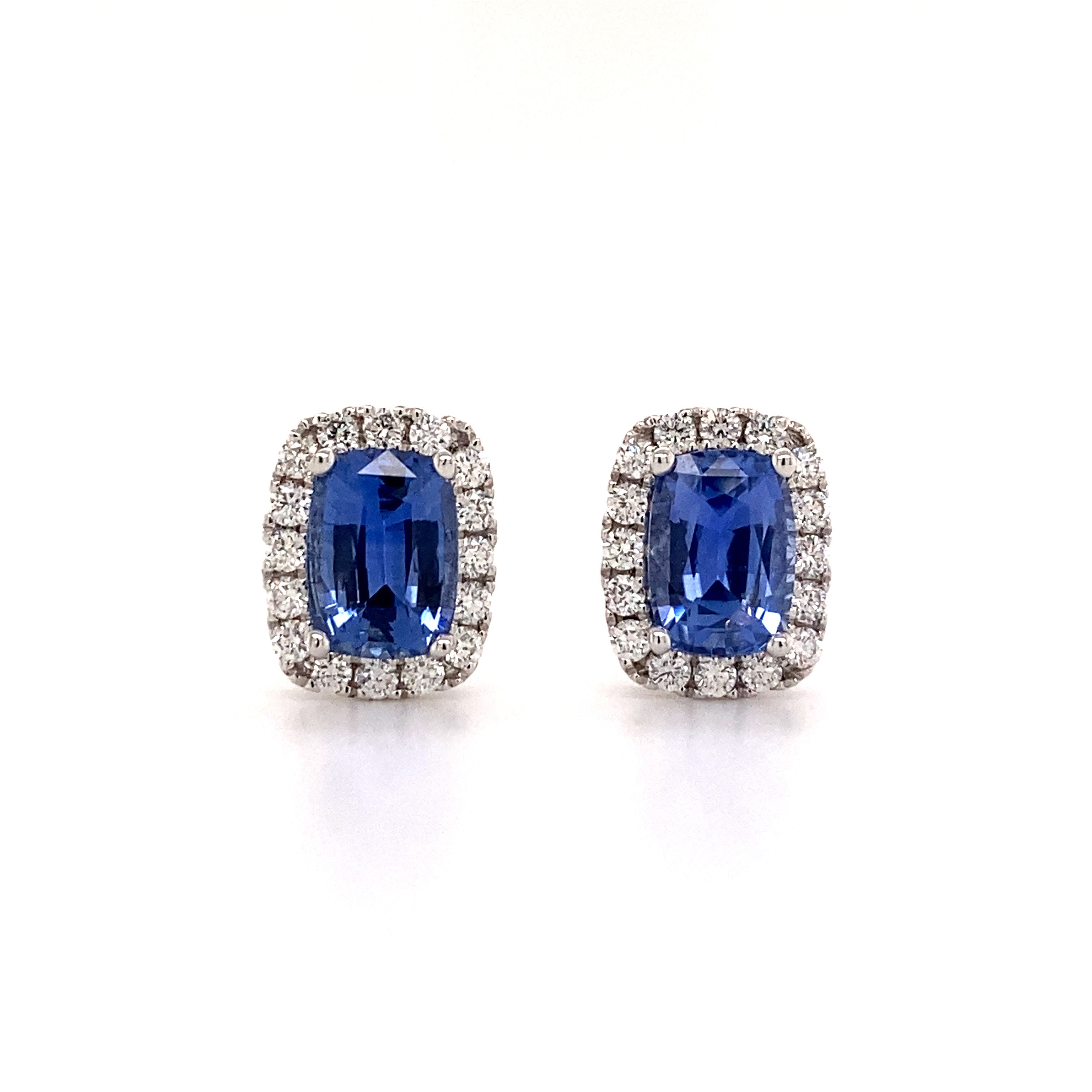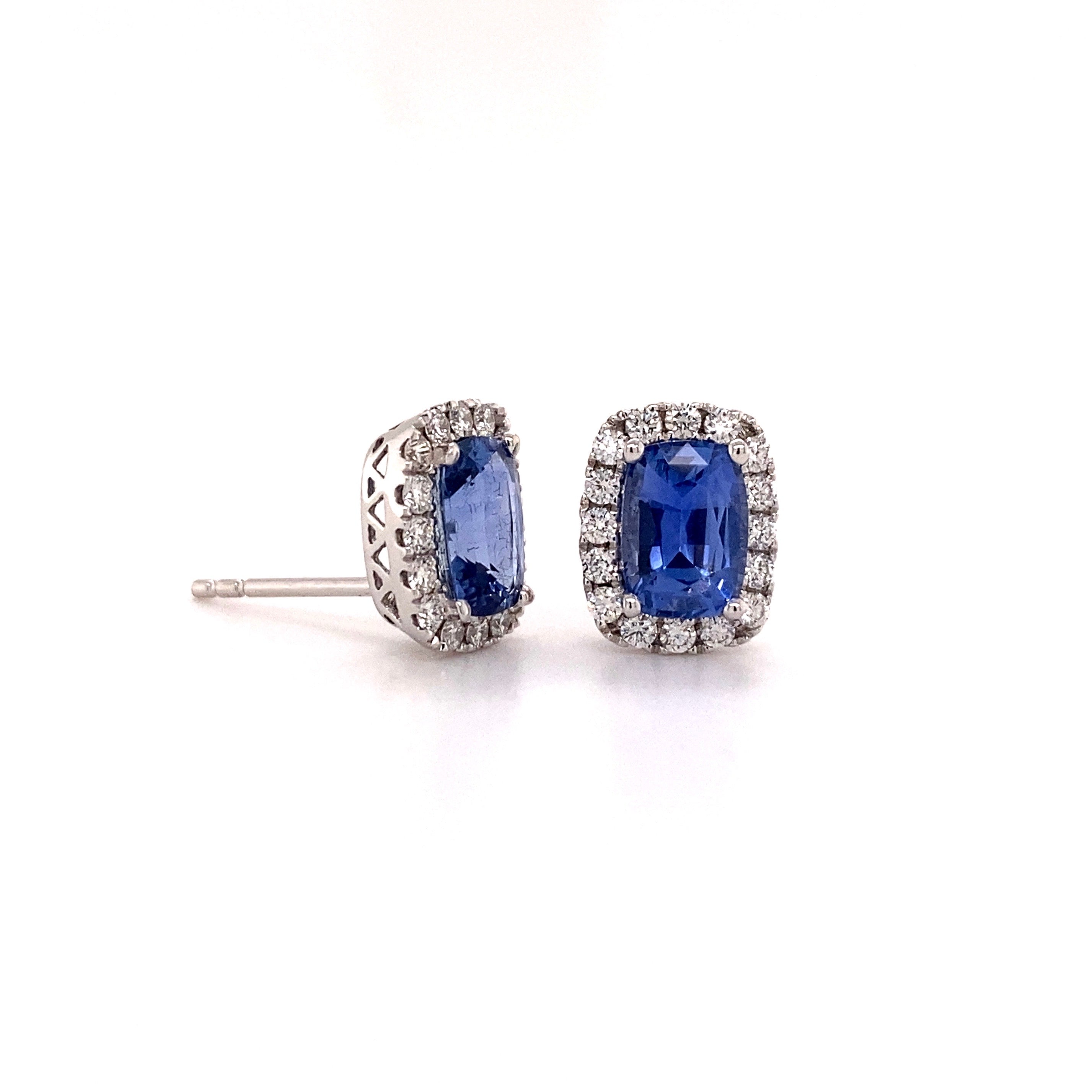 Long-Cushion Shaped Blue Sapphire Earrings