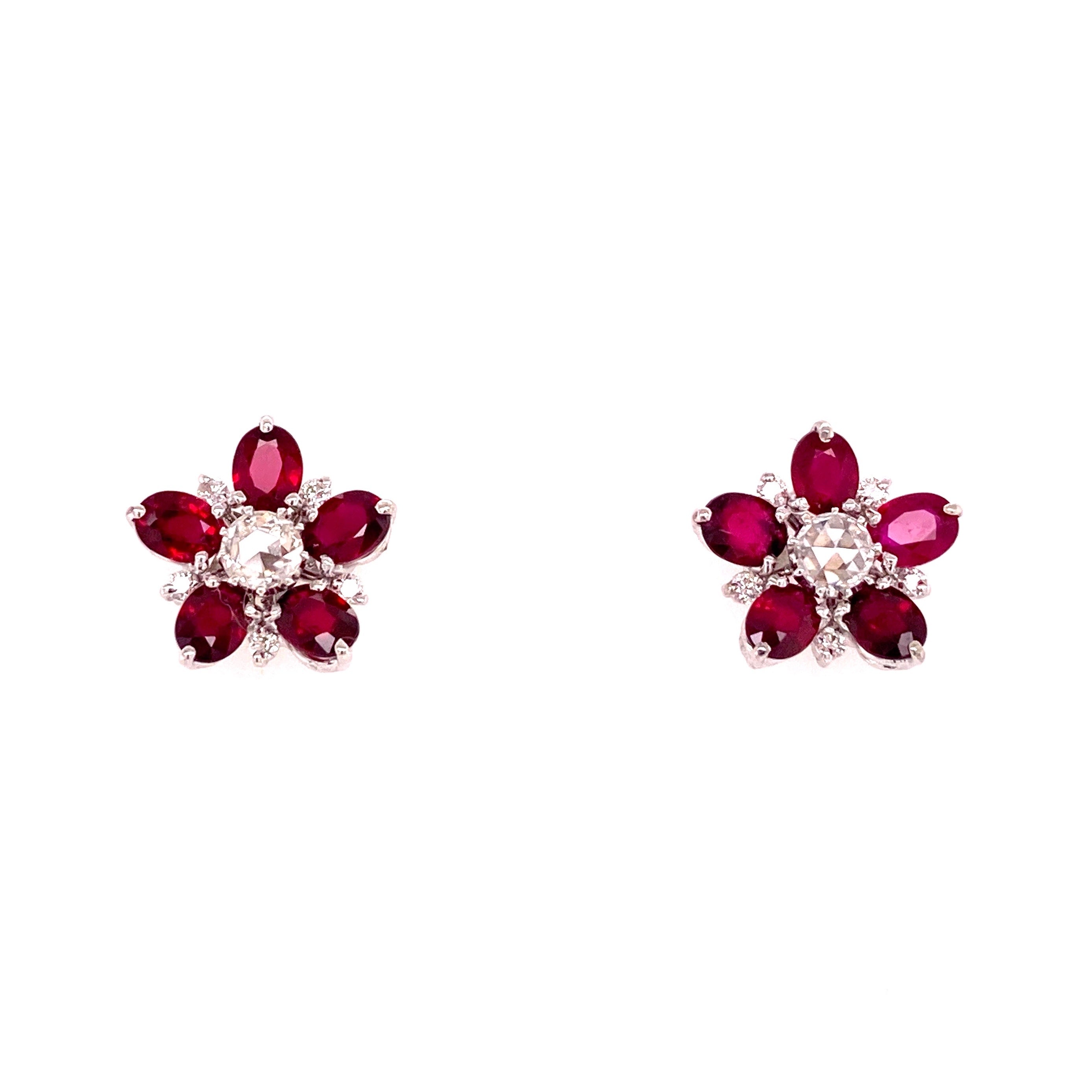 Natural Ruby weight 2.27 carats, natural diamonds total weight 0.06 carats. Set in 18K white gold.